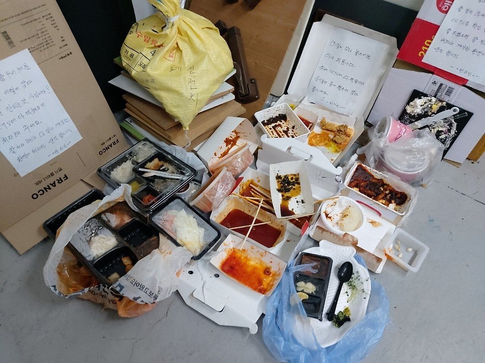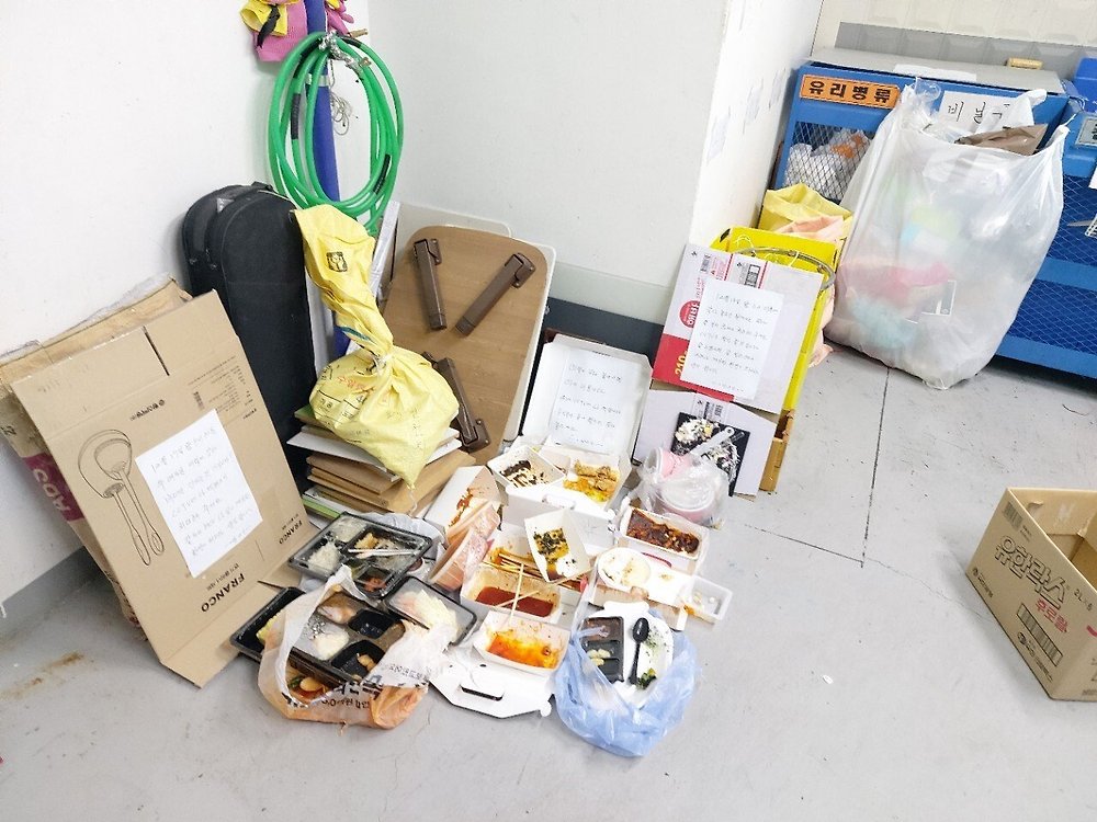 원룸쪽 배달 가보면 저렇게 그냥 버리는 사람들 진짜 있더라 배달음식 처먹고 그냥 널부러놓음ㅋㅋㅋㅋㅋ