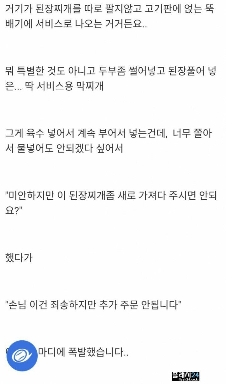 근데 된장찌개만 추가 주문 안 되게 한 건 좀 심했다