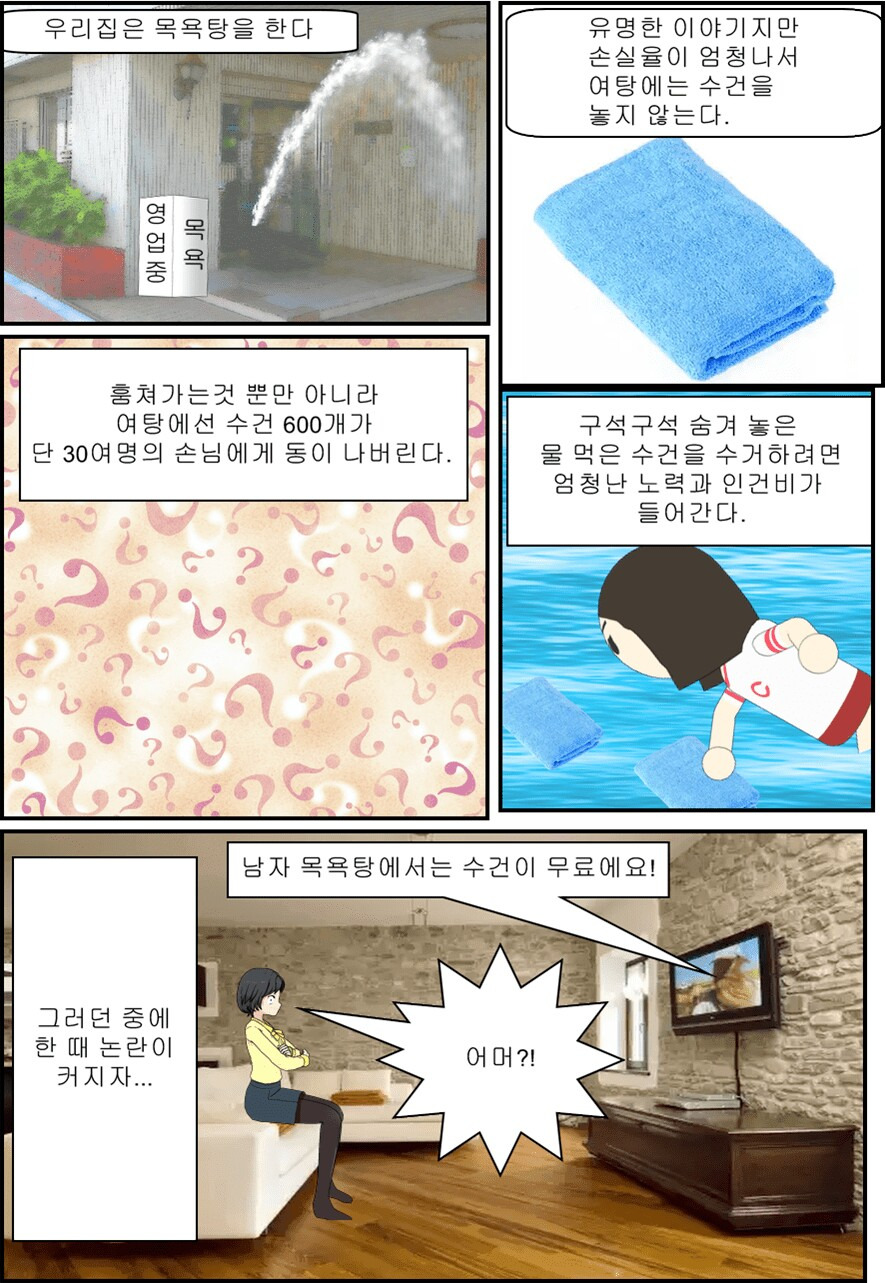 남탕은 오히려 수건이 더 생기지 가져온 수건도 놓고감;;;;