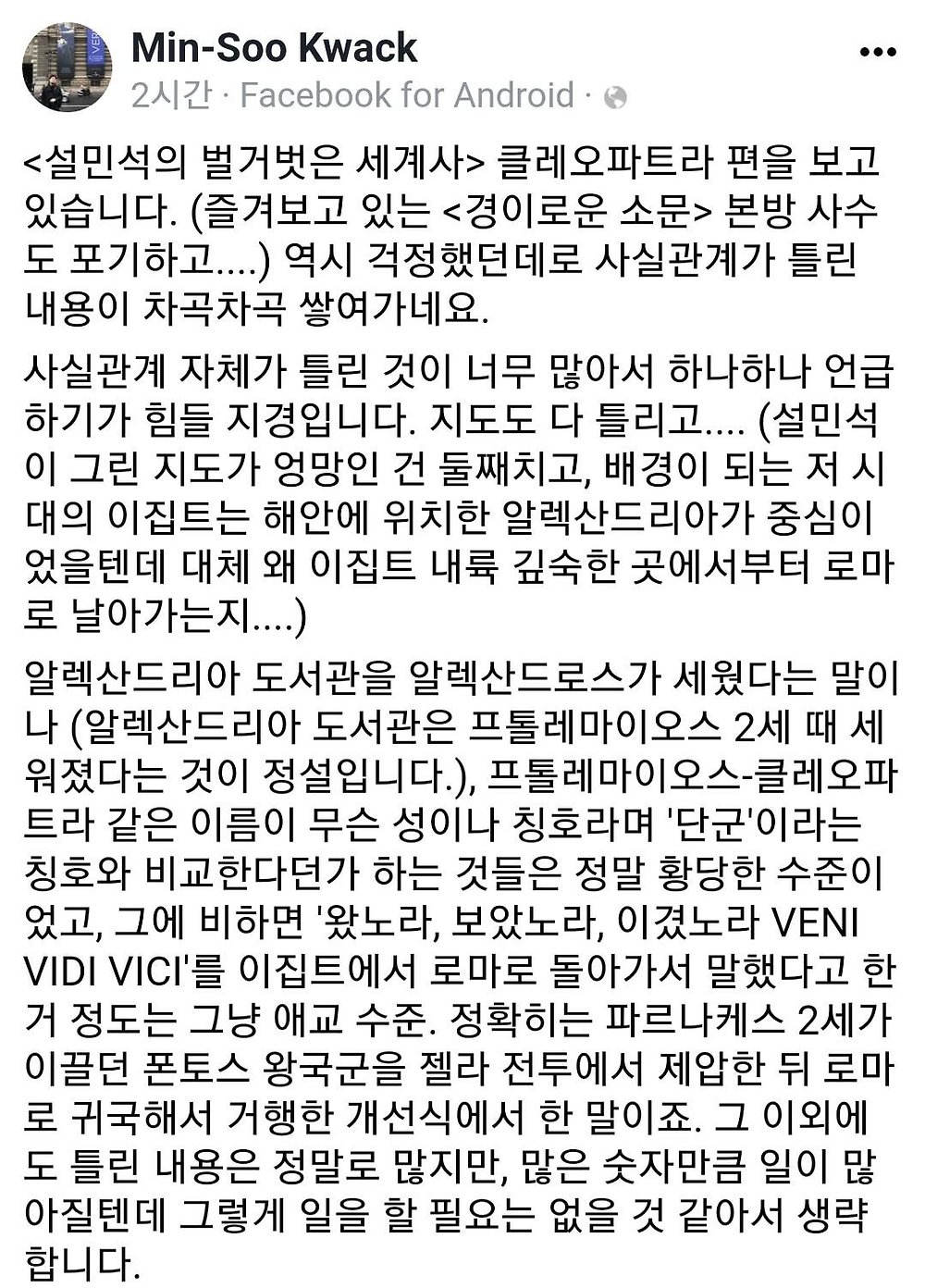 그냥 연극영화과 출신의 역사 좋아해 책 좀 읽은 사람일 뿐. 교수도 아니고 전문가는 더더욱 아님.