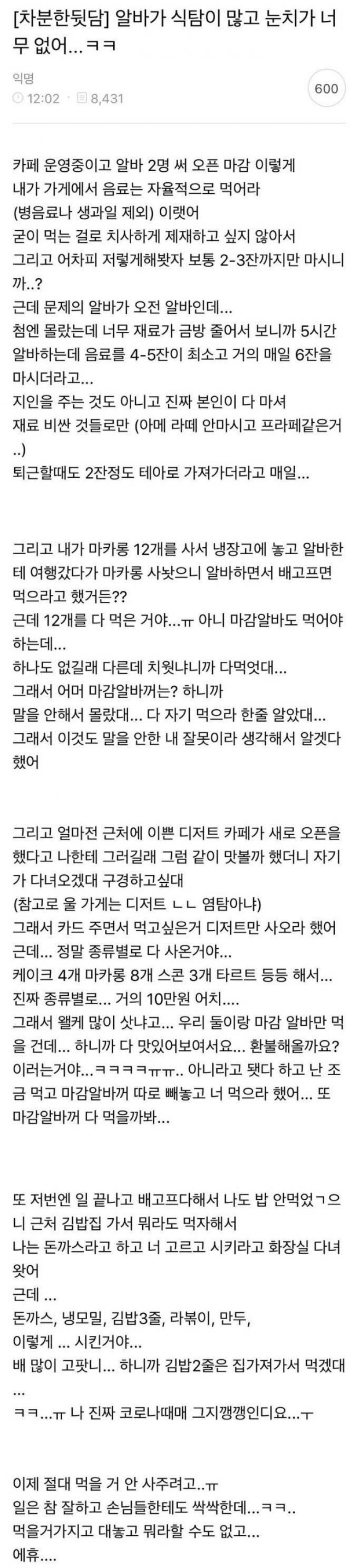 근데 일 잘 하고 손님한테 싹싹한 친구는 자를수가 없다