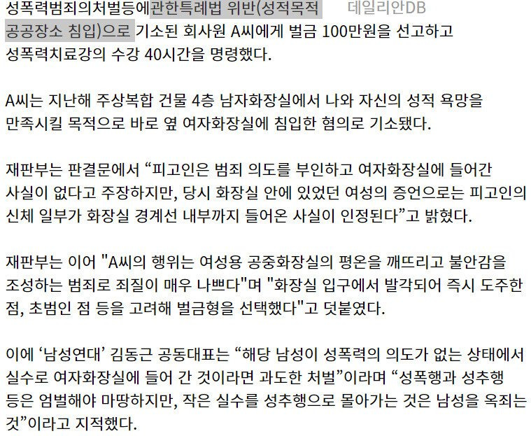 여자가 반대로 남자화장실 들어와서 고소해도 저런식으로 대우해줌?