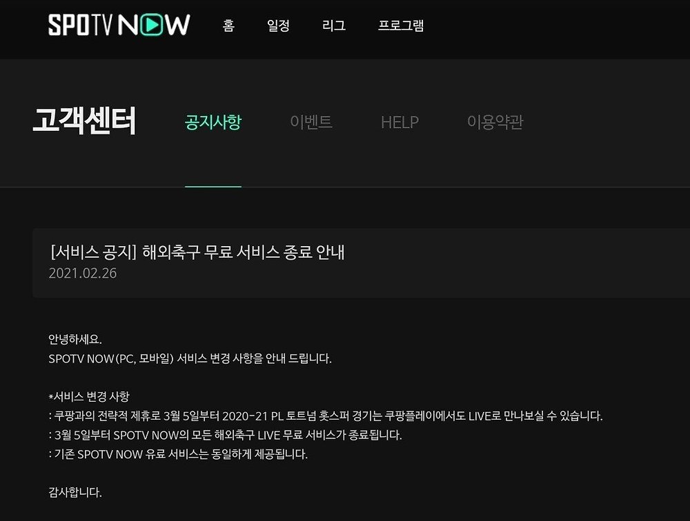 [유머] [펌][오피셜] 스포티비, 손흥민 경기 무료중계 종료 -> 쿠팡플레이로