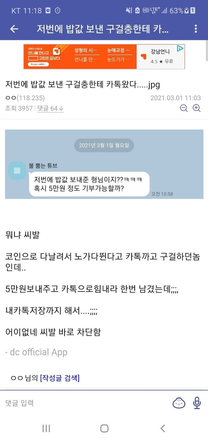 [유머] 커뮤 구걸충에 밥값보낸 후기