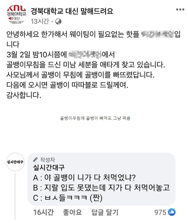 남자인 친구끼리 만날때 특) 그냥 상황이 재밌어서 안주가 필요없음.