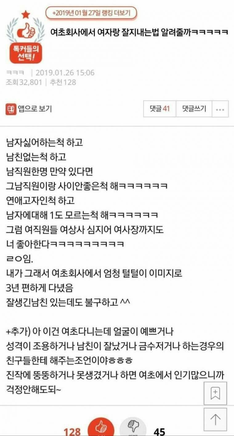 소개팅 같은데서 상대 여성이 여초회사에서 적응 못해하거나 힘들어했던 경험이 있으면 좋은 사람일 가능성이 더 높아짐. 개인적으로 신뢰성 높은 통계임