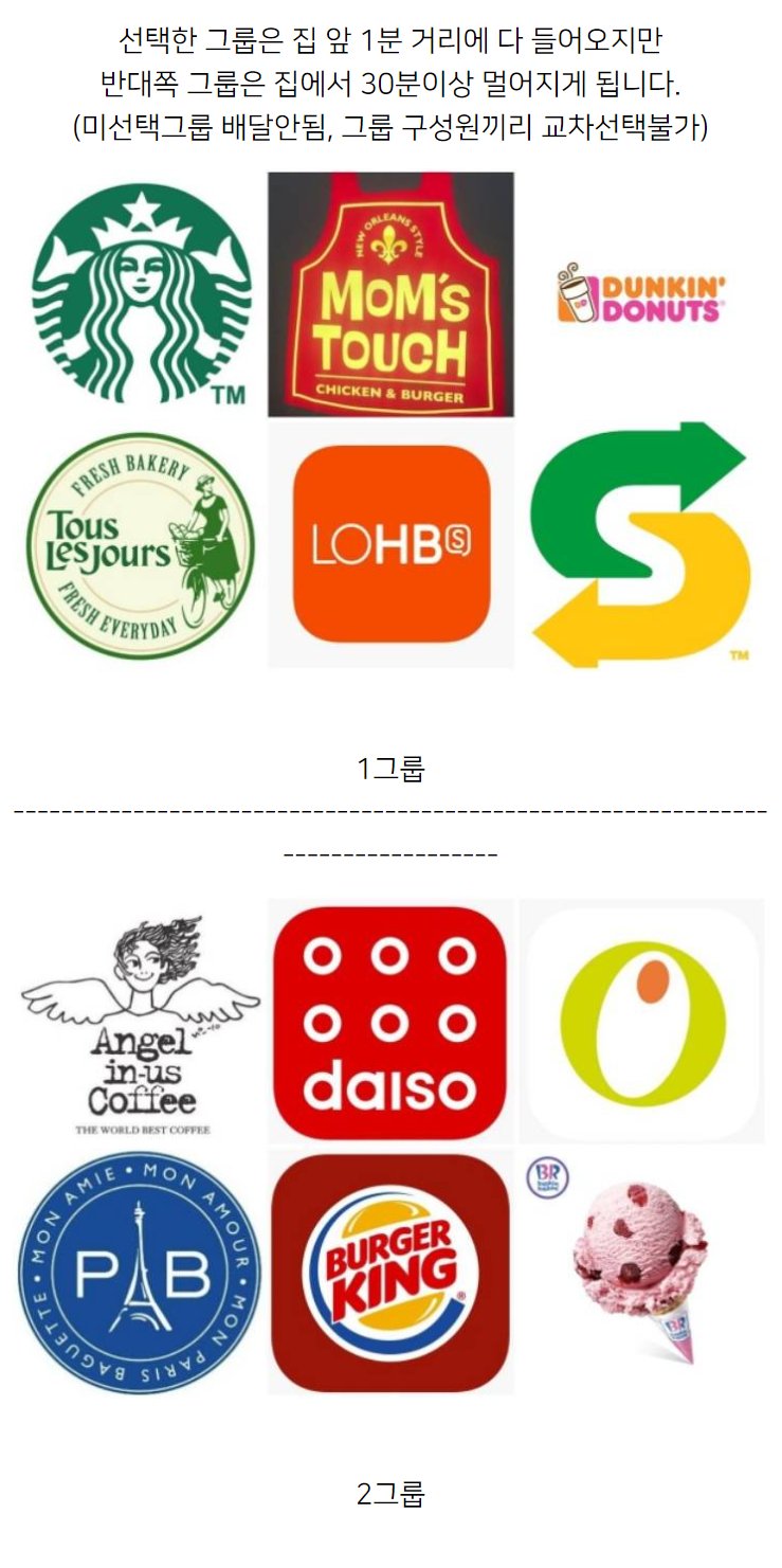 내가 사는곳에 2번 가게들만 1분거리에 다 있음. 1번가게중에 제일 가까운게 맘터 걸어서 15분.