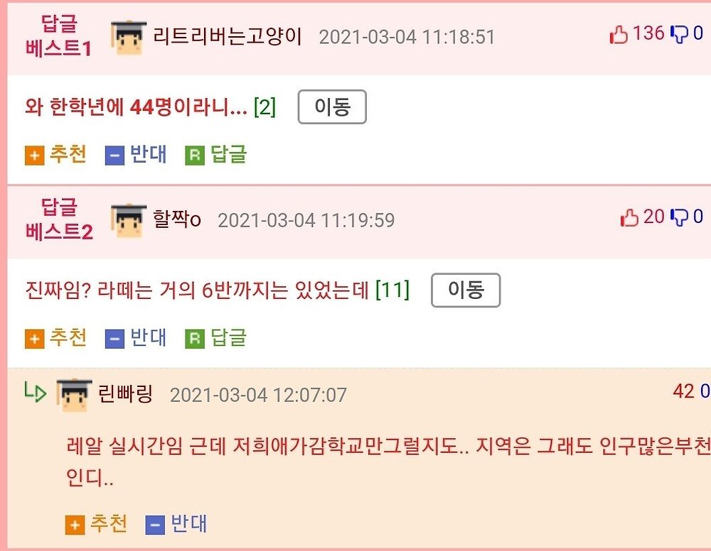 오전반 오후반은 머임?? 라떼는 한반에 50명씩 10반 이였는데.. 선생한테 대들면 귀싸대기는 기본