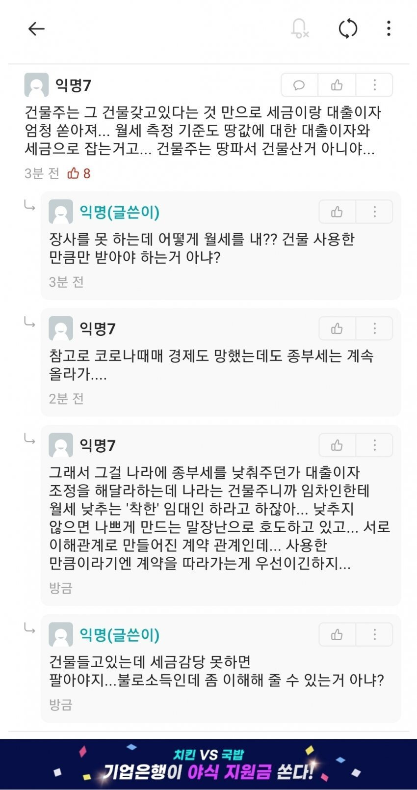 건물주가 세금 감당 안되서 팔아야한다면 장사하는 사람도 장사 안되면 접어야지..... 똑같이 힘든건데 참....