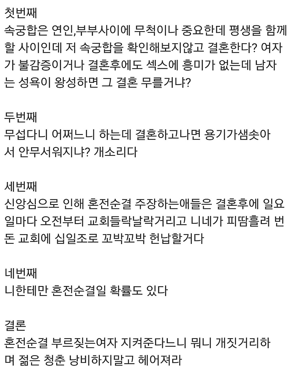 결혼에 있어서 속궁합은 절대절대 무시하면 안됩니당