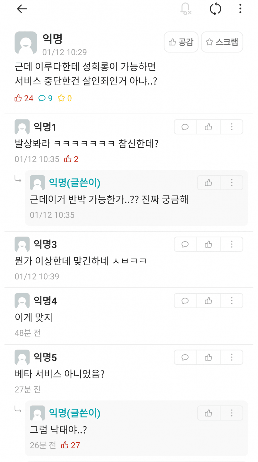 대가리에 똥만 가득찬 찐이 항상 문제. 데이터 쪼가리를 자꾸 사람화 하지 말아라. 2D랑 사랑을 나누고 결혼을 하고 아주 제정신이 아닌 놈들이 많음. 터미네이터 같은 일이 일어나면 프로그래머가 아닌 이런 찐들이 제일 먼저 뒤질듯