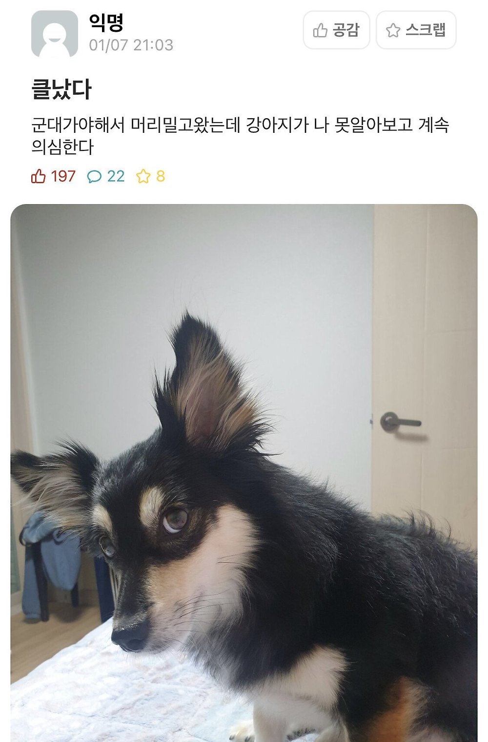 [유머] 머리 밀었더니 못 알아보고 의심하는 강아지