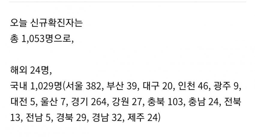 오늘 확진자는 419명이라는데? 이거 언제적 자료인겨