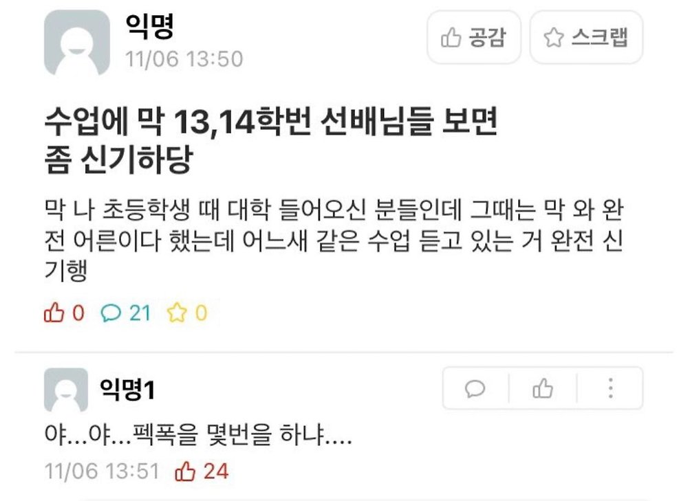 [유머] 수업에 막 13,14학번 선배님들 보면 좀 신기하당