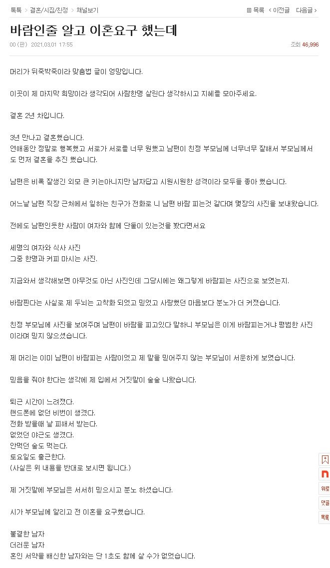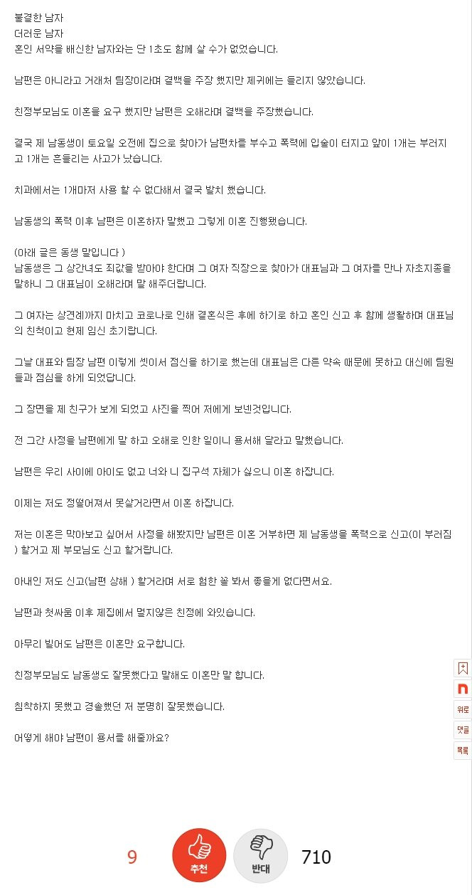 남편 분 애 생기기 전에 이혼하게 돼서 정말 다행입니다