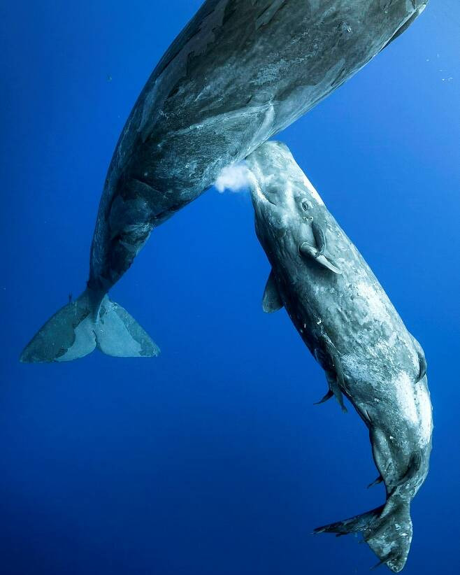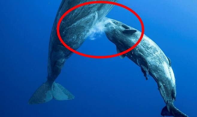 [유머] 새끼에게 모유 먹이는 향유고래 포착
