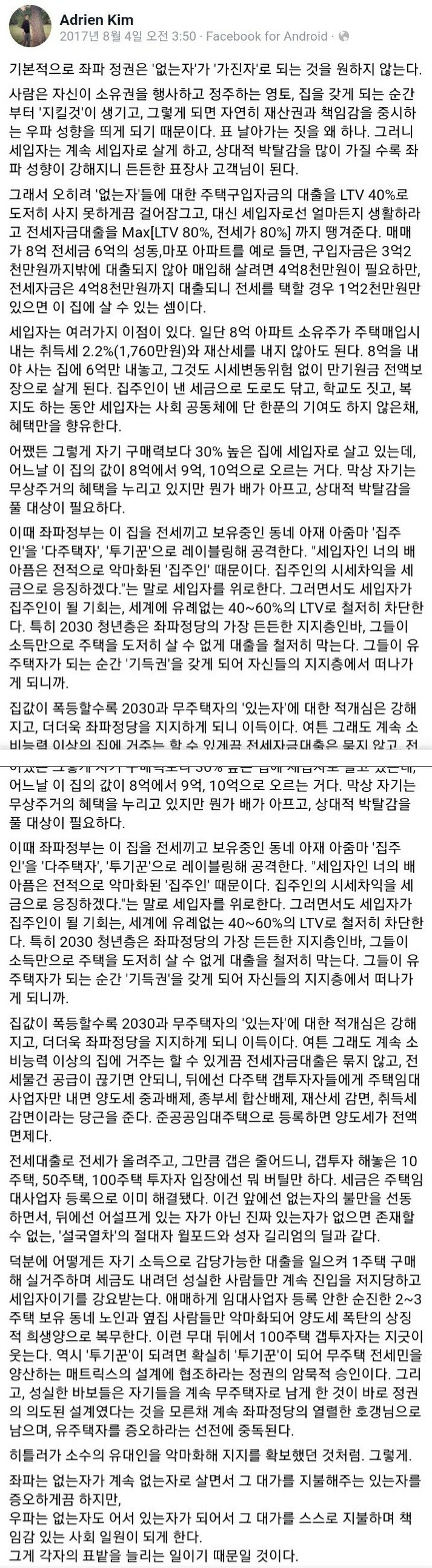 좌파, 우파의 문제가 아니라 집 값은 누가와도 못잡음. 100억이 나에게만 있어야 100억의 가치가 있지 전국민이 100억이 있으면 그게 100억이냐. 우파역시도 집 값 떨구고 국민모두가 집사는거 원치 않음. 아이러니 하게도 집값 잡으려면 극좌파가 나와서 공산주의처럼 강제로 집 값 떨궈야 잡을 수 있음. 지금 현상태로는 시장에 맡겨두면 절대 집 값 못잡음.