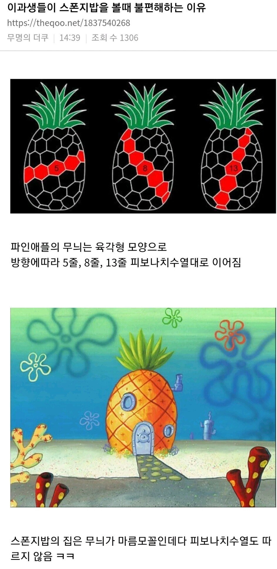[유머] 이과생들이 스폰지밥을 볼 때 불편해 하는 이유