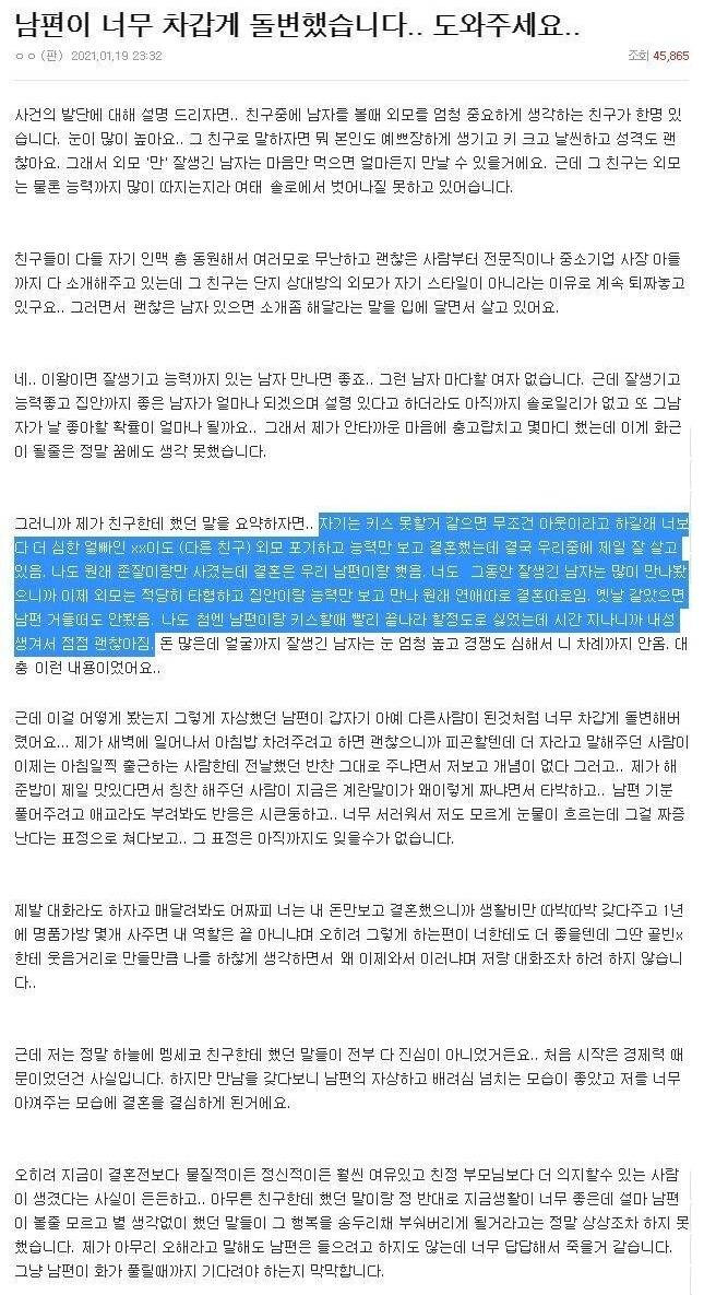 보니까 남편도 어데가서 아쉬울거 없는 놈이네