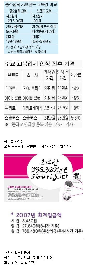 많이 비쌌지 그래서 수제집가서 만드는 애들도 있었음, 어차피 좆도 차이가 없었으니까 그러고보니까 개웃기네 ㅋㅋㅋ 수제양복점 가서 만드는 교복이 아마 그 당시 스마트나 엘리트 이런거보다 더 쌌음 ㅋㅋㅋ
