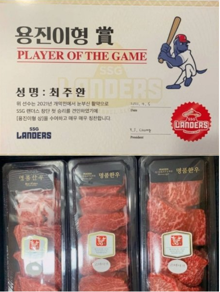 선수들 위해서 직접 '용진이형 상' 만들어서 격려 하는거보면