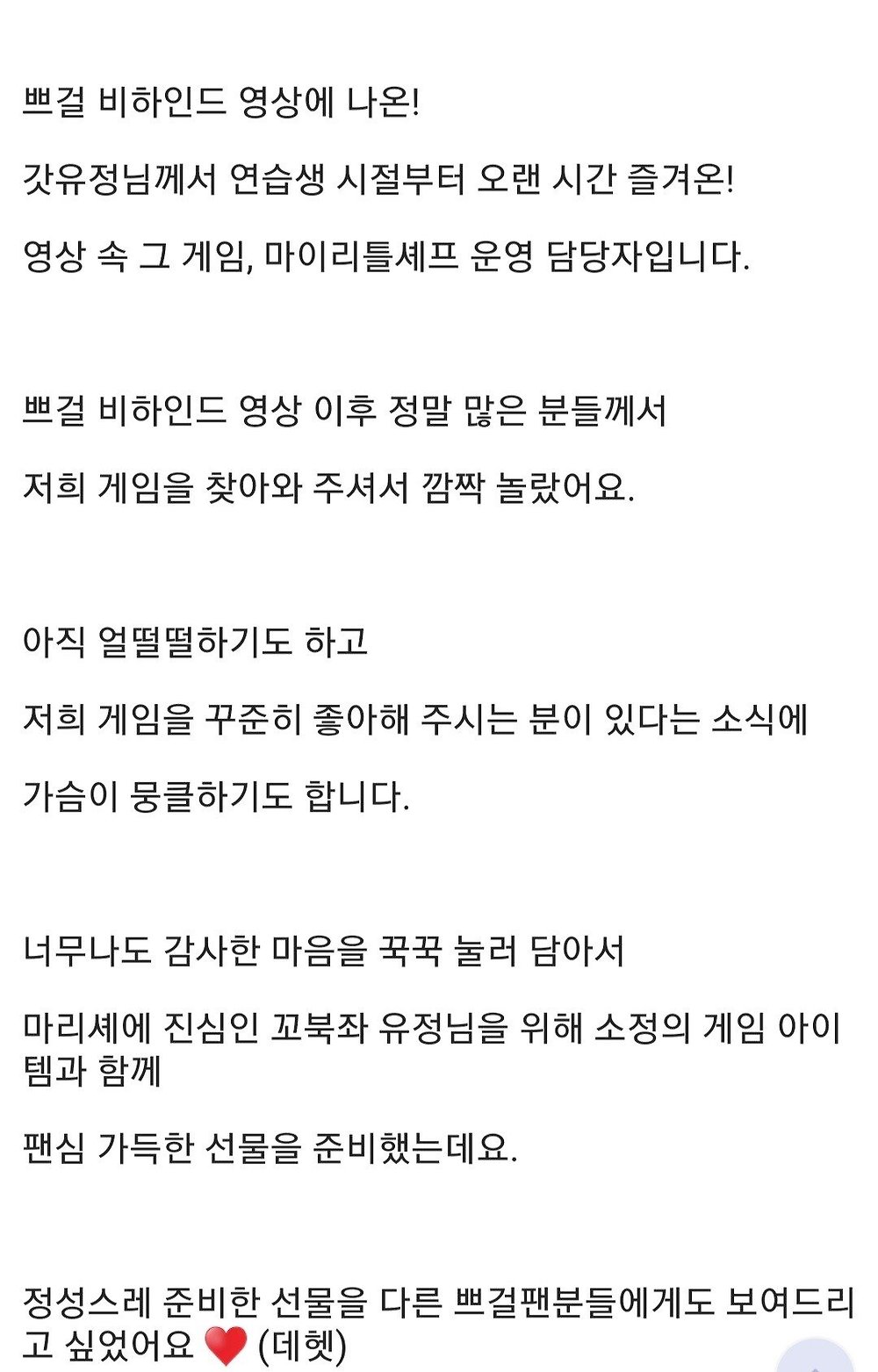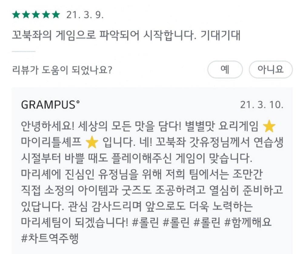 역주행하고 예전영상을 보다가 저 게임을 알게 된 팬들이 리뷰에 찾아가고 게임개발사도 답글을 남김