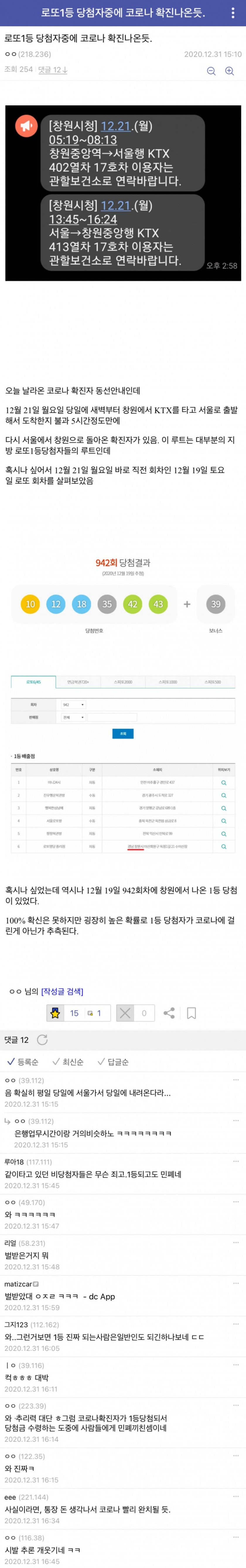 [유머] 로또 1등 당첨자 중에 코로나 확진자 나온 듯