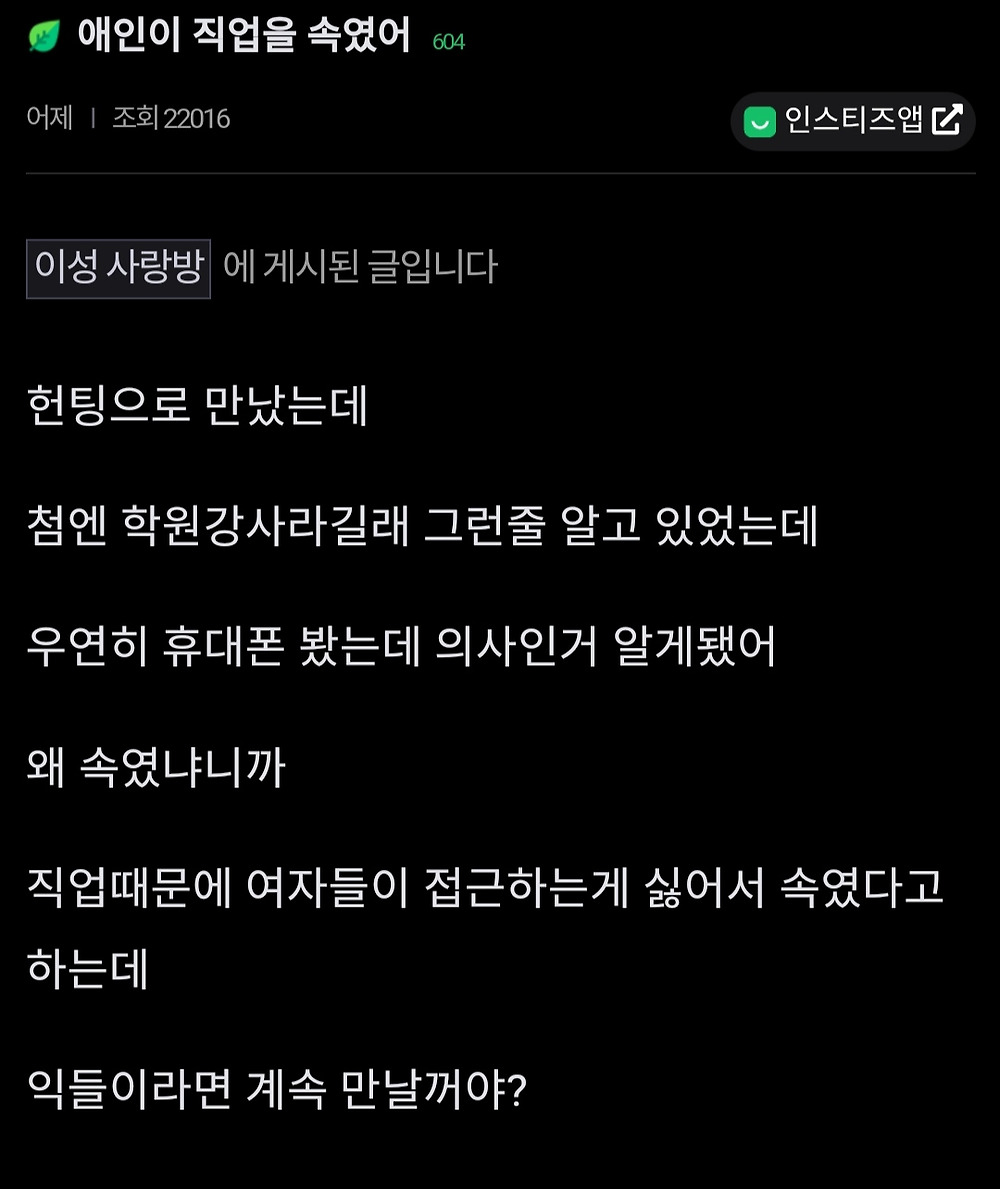 의심 증폭장치들 근데 의사면 주위에서 많이들 여자 소개 시켜주지 않나..? 것보다 시간이 있어...?