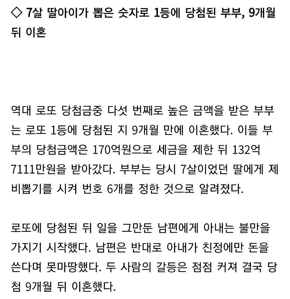 [유머] 7살 딸이 제비뽑기로 뽑은 숫자로 로또 1등에 당첨된 부부