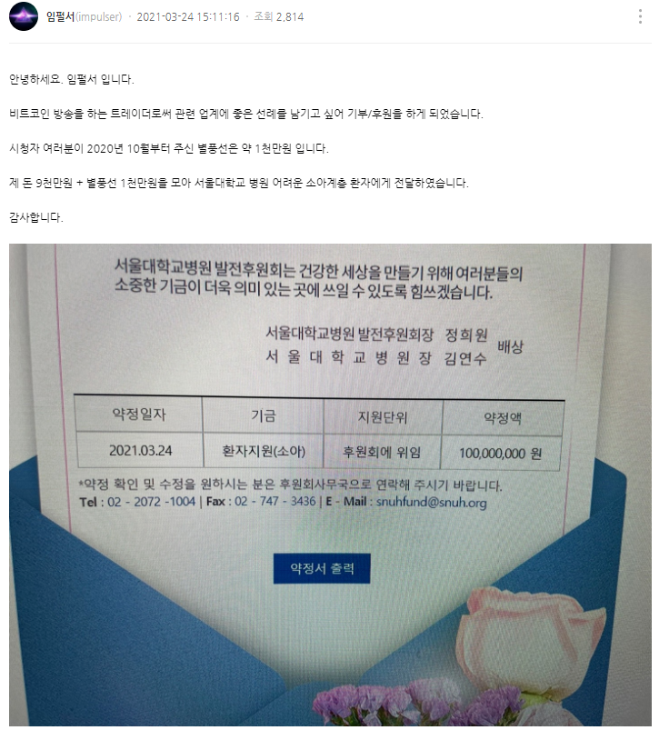 [유머] 코인판 졸업하고 1억 기부