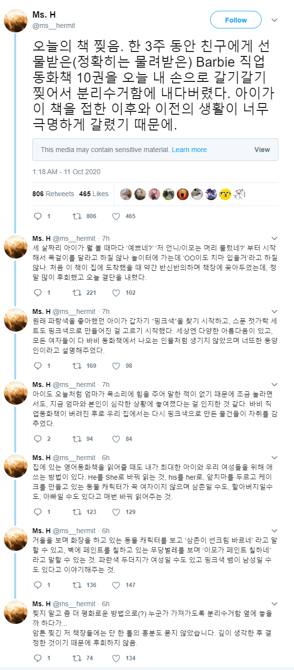 [유머] 3살짜리 딸 바비동화책 찢어버린 엄마