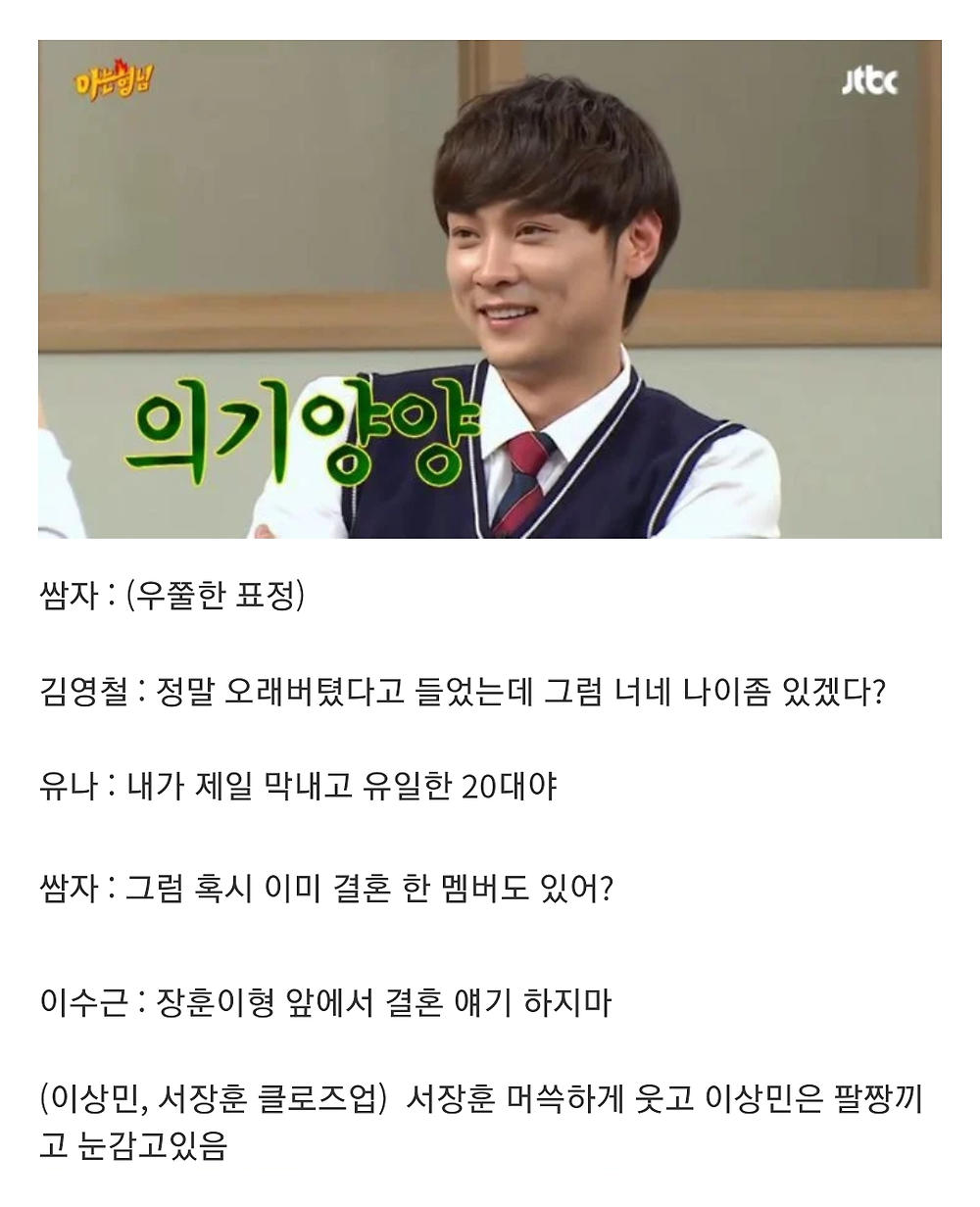 아는 형님 안보는데도 이수근 깐족대는건 눈에 선하네 ㅋㅋㅋ