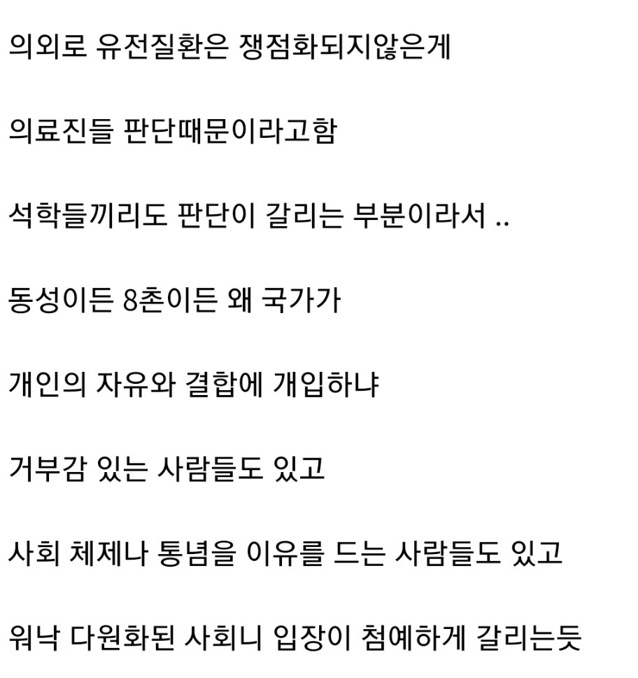 유전자적으로 문제 없다는 전제 깔리면 더 이상 금지할 명분이 있나? 나도 팔촌 단 한명도 모르는데