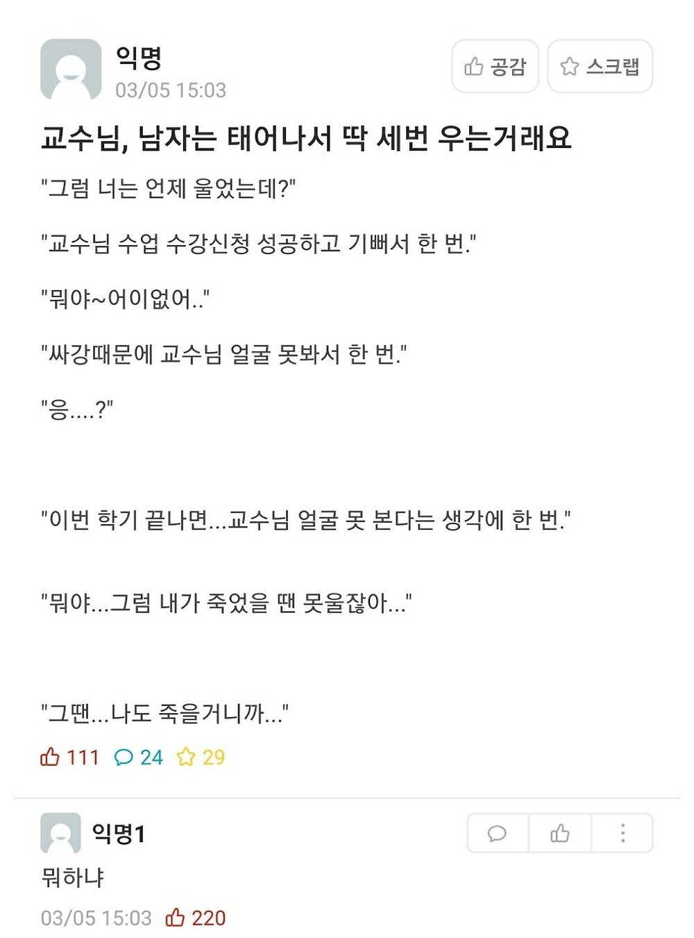 [유머] "남자는 태어나서 딱 세번 우는거래요"