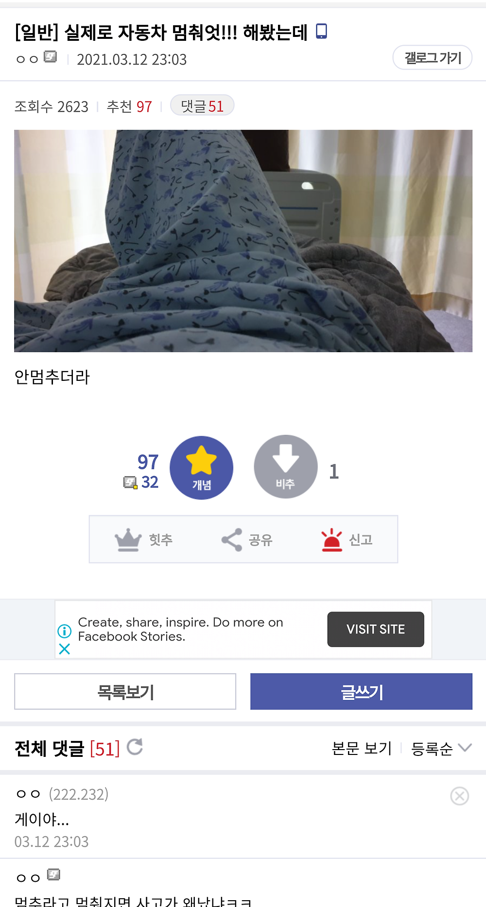 [유머] 실제로 자동차한태 멈쳐라고 한 디시인