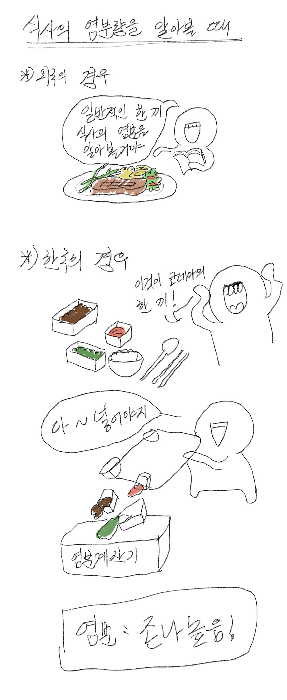 한국 밥상의 특수성을 이해 못하고 꺼내놓은 반찬통 전부의 염분량을 조사해서임 실제로 먹는 양은 몇 젓가락 수준인데