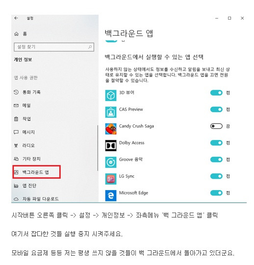 [유머] 윈도우10 설치 후 꼭 확인해볼 백그라운드 앱