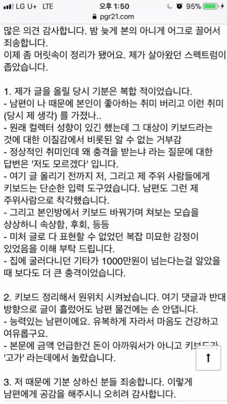 마지막 글은 와이프 커버쳐주려고 남편이 쓴 글같다..