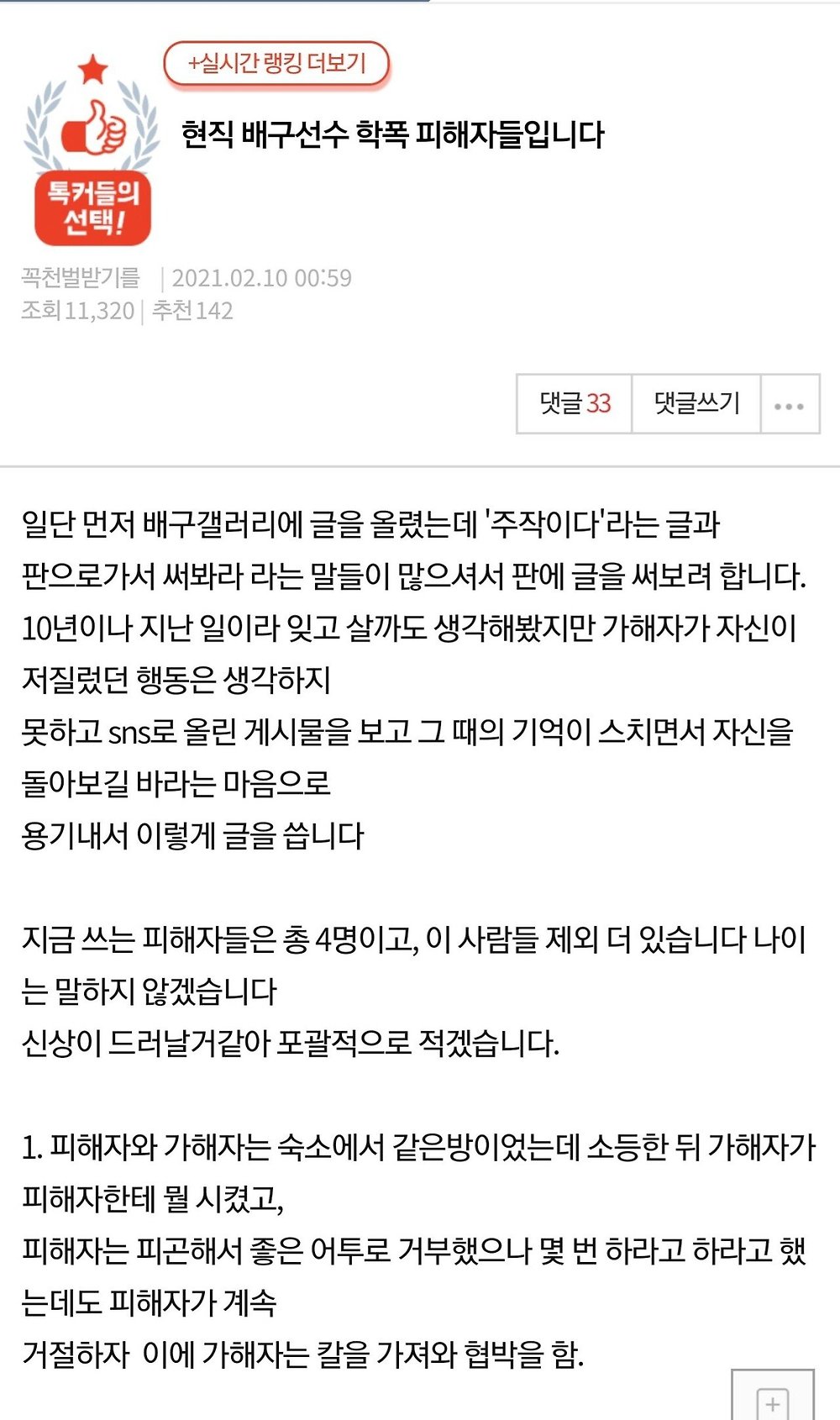 [유머] 오늘 새벽에 뜬 여자배구 이재영 이다영 자매 학폭 논란