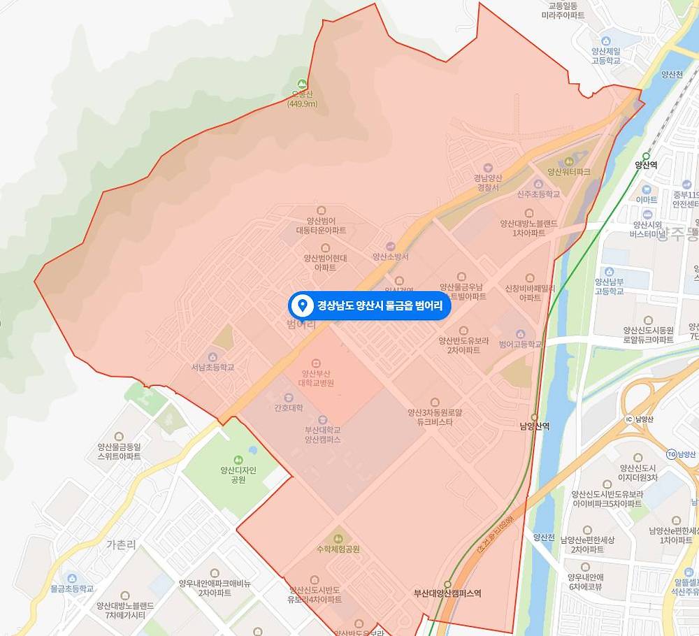 경남 양산시 물금읍 범어리 인구 5만6천명 양산신도시 개발로 이젠 더 이상 시골 아니지만 주민들이 동 승격을 별로 원하지 않음 농어촌전형 쓸 수 있음