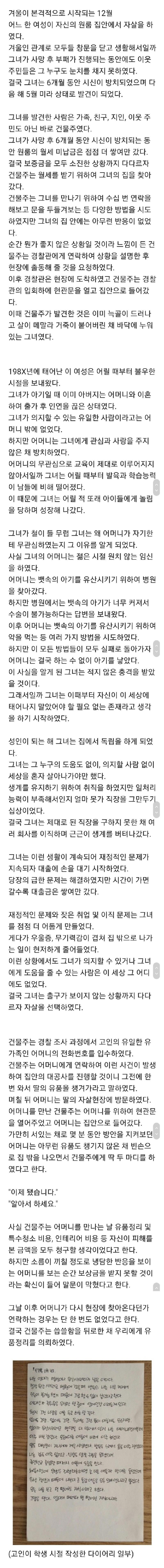 참... 씁쓸하네요. 다시 태어나선 행복한 가정에서 행복한 인생을 보내시길.