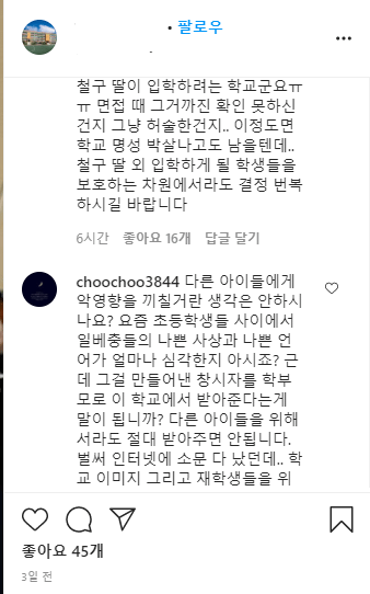 만약 애가 있었다면 나도 저런 병신놈 딸 입학한다면 따질듯