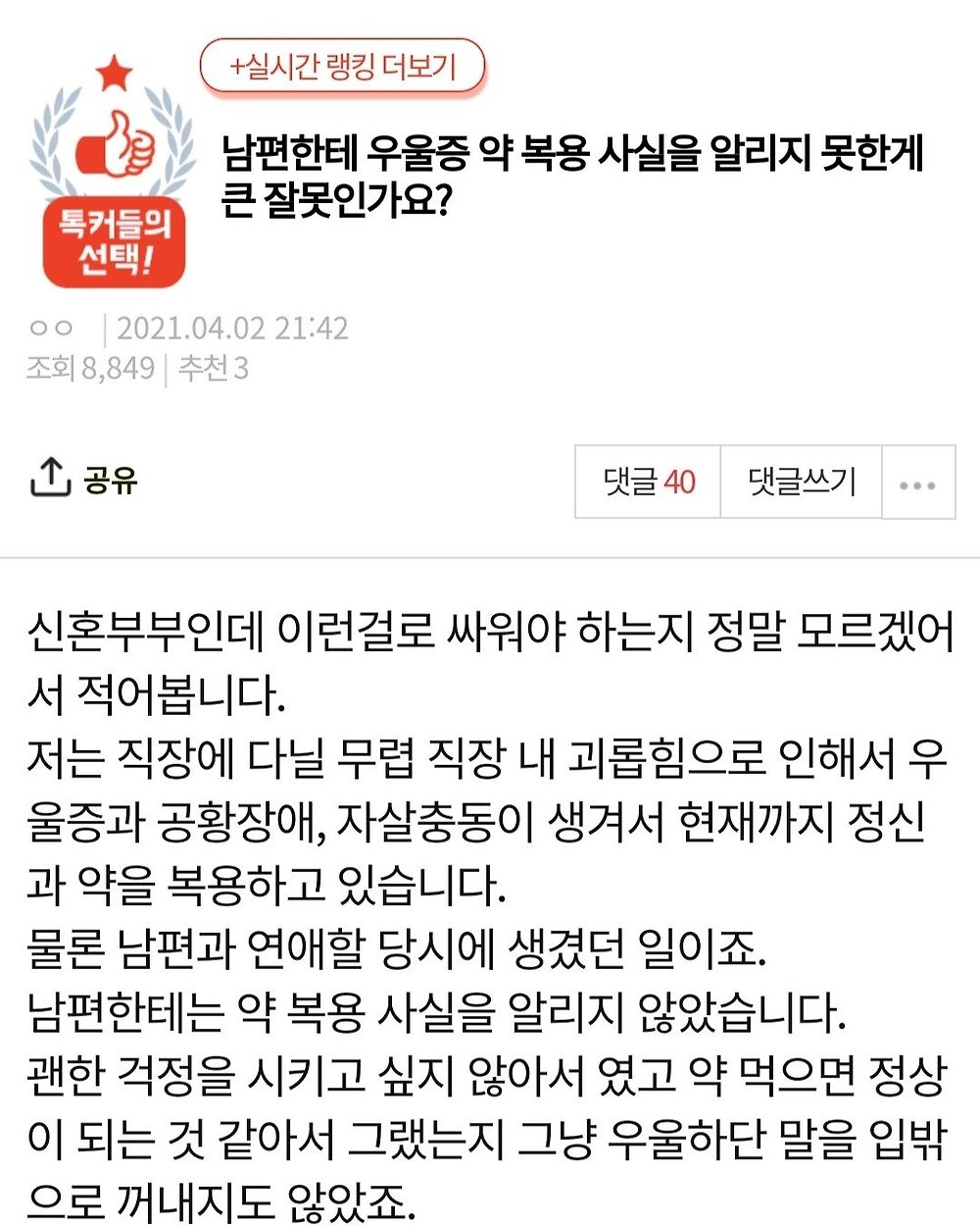 [유머] 우울증 숨기고 결혼이 그렇게 잘못인가요?