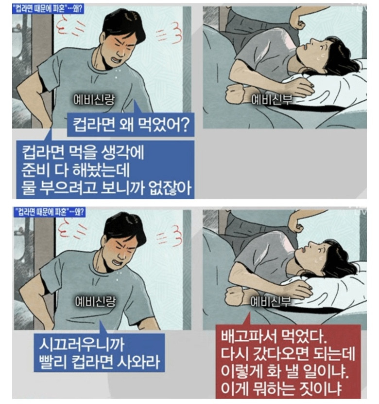 여자도 낼름 먹었다 할 수 있지만 남자가 참 속좁다. 우리집은 자랄때 삼형제라 누구 먹고 누구 안먹으면 동생들 땡깡 오지게 부려서 인원수대로 샀었는데 처음부터 컵라면 2개를 준비해두지 그랬냐.