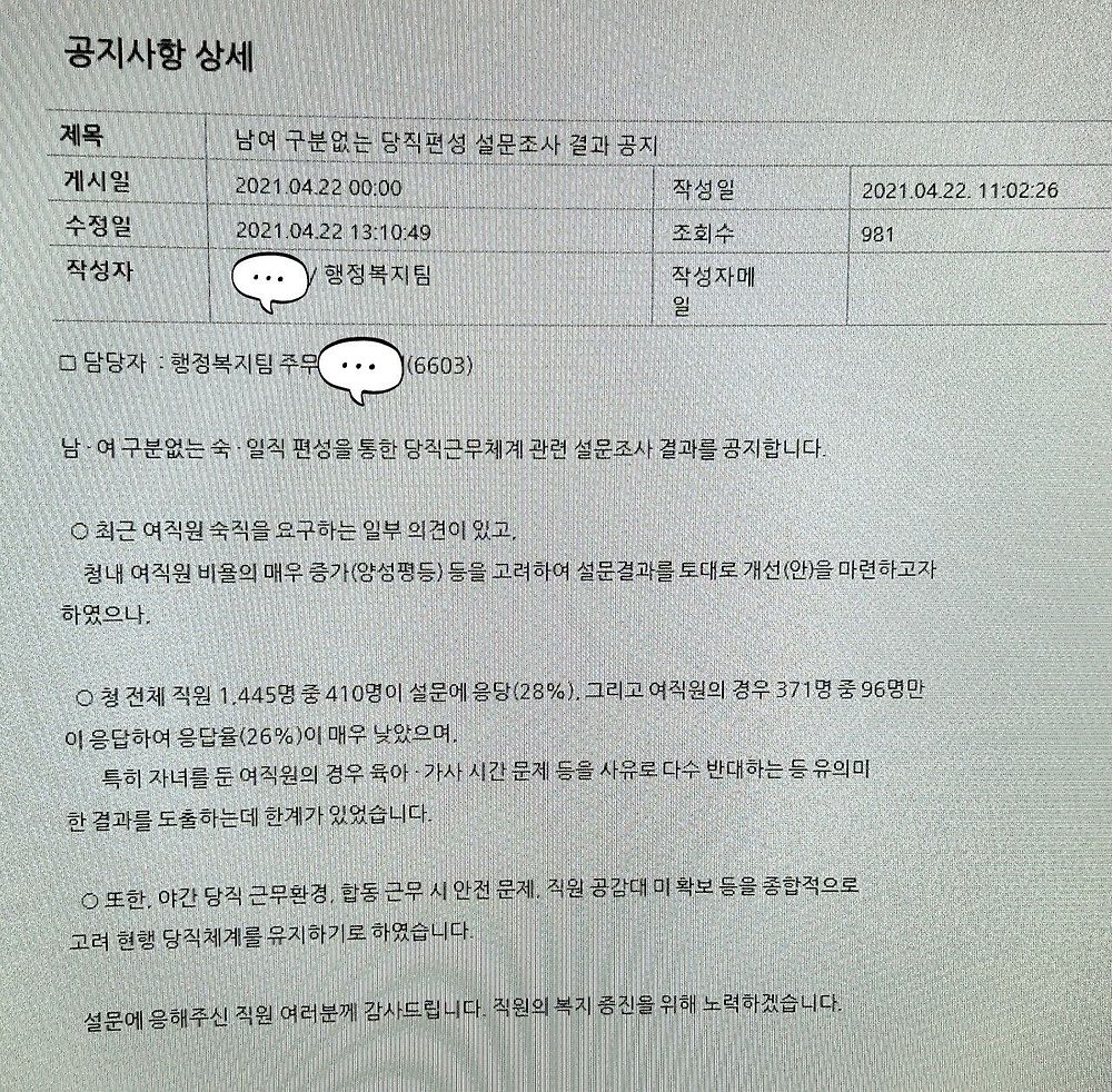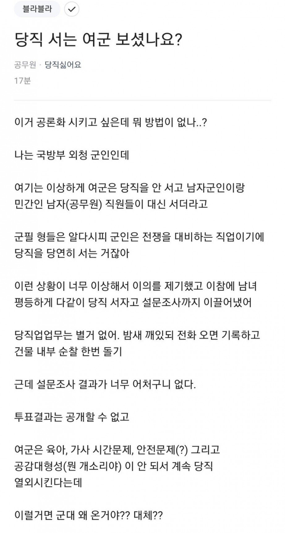 엥 17군번 짬찌인데 우리부대 여간부도 당직근무 했는데