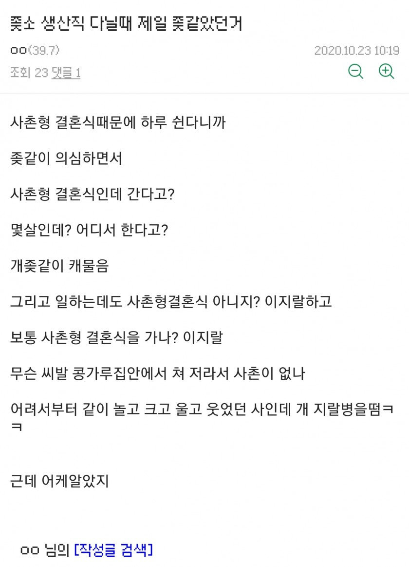 진짜 쉰다 그러면 반장이 와서 존나 꼬치꼬치 캐묻더라
