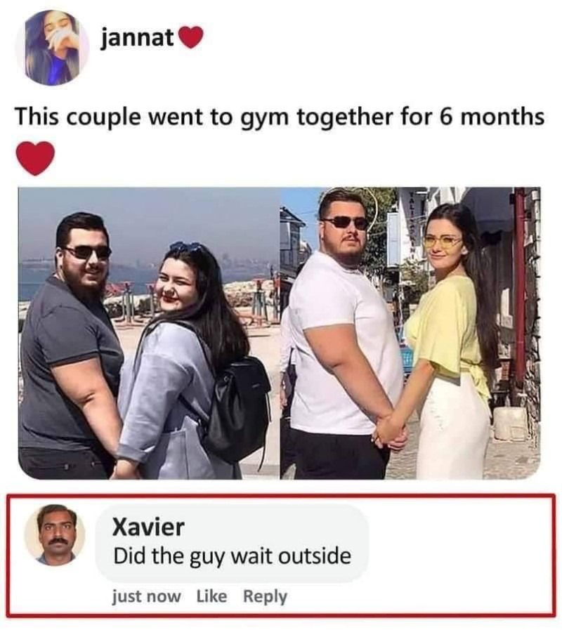 여자도 동일인 맞는거 같고. 여자 살빠진 정도에 비해서 남자는 그렇게 많이 안 빠져서 같이 운동 안하고 밖에서 기다리기만 했냐는 말인듯