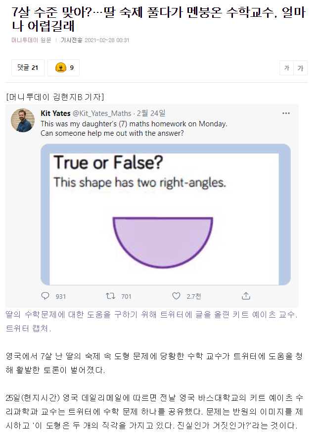 직각이 뭔지 아니까 말 그대로 각진 부분이 없는거로 보여서 반원은 직각이 없다고 생각은 하는데 왜 그렇게 되는지 과정 설명이 어려워서 수학을 포기했음.