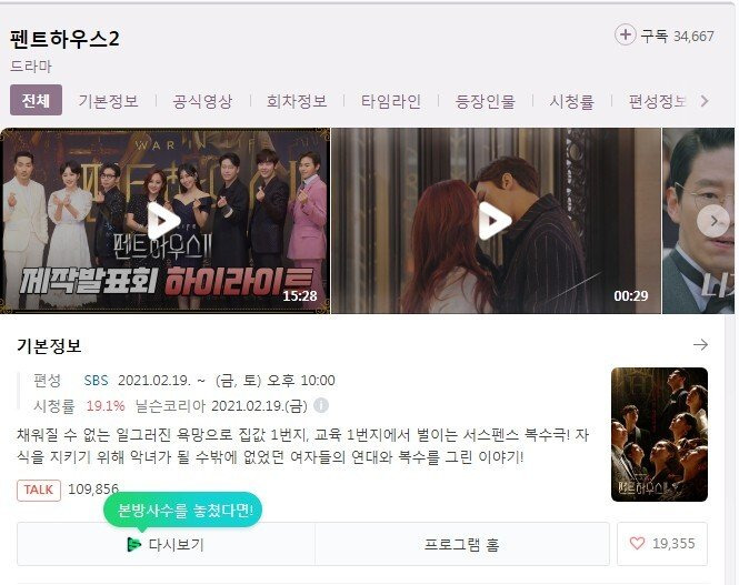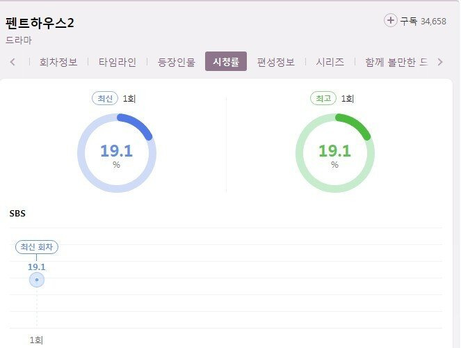 [유머] 펜트하우스 시즌2 첫방송 시청률 19.1%