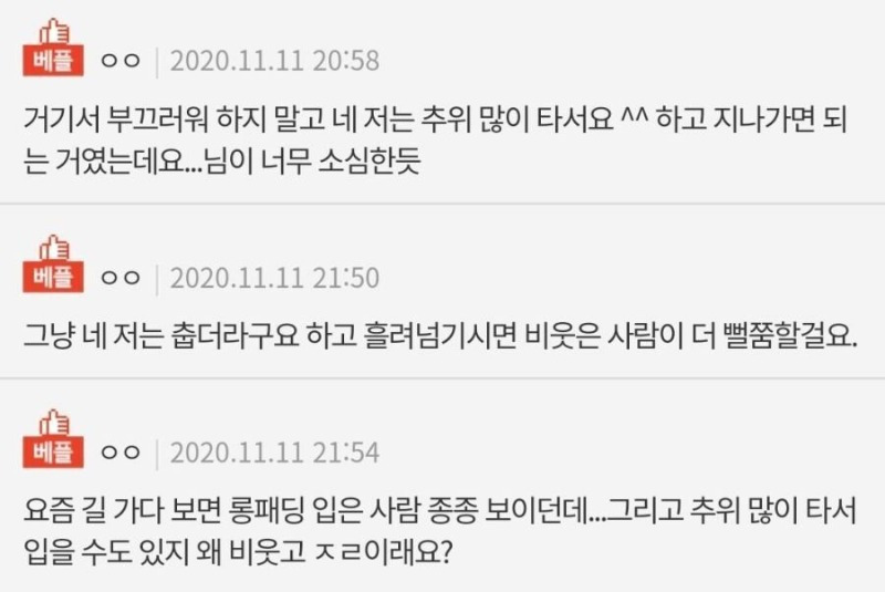 나도 추위 많이 타는데 한여름에 에어컨 틀면 긴팔 겉옷 찾아 입고 그럼... 본인이 추워서 입는건데 뭐..